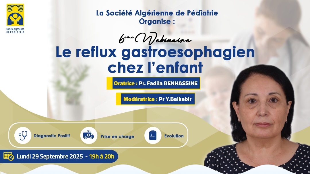 La Société Algérienne de Pédiatrie a le plaisir de vous inviter à son 6ème webinaire.